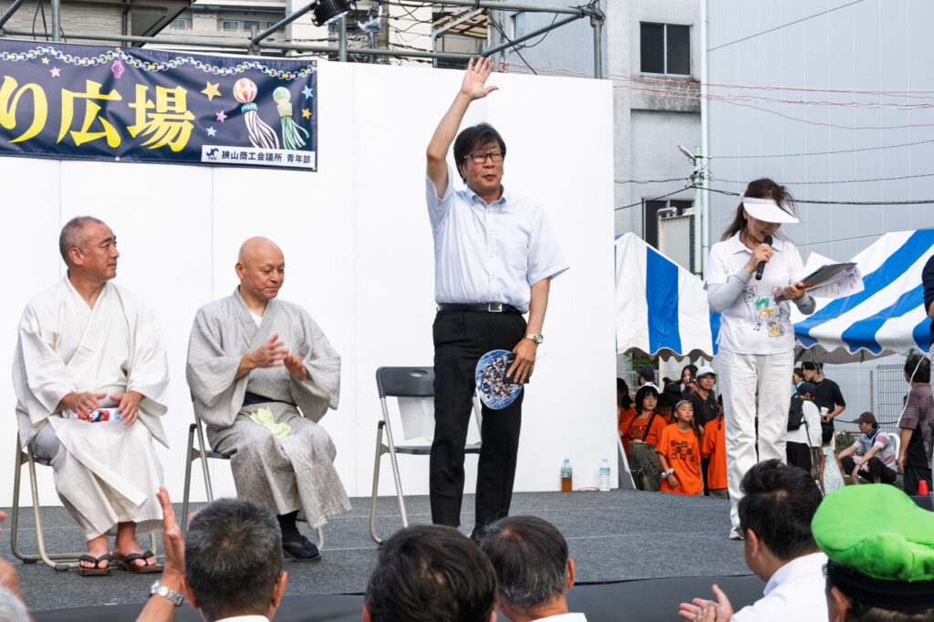 入間川七夕まつりに参加した狭山工業高校の先生と生徒の皆さんです。