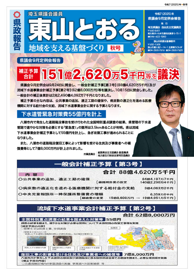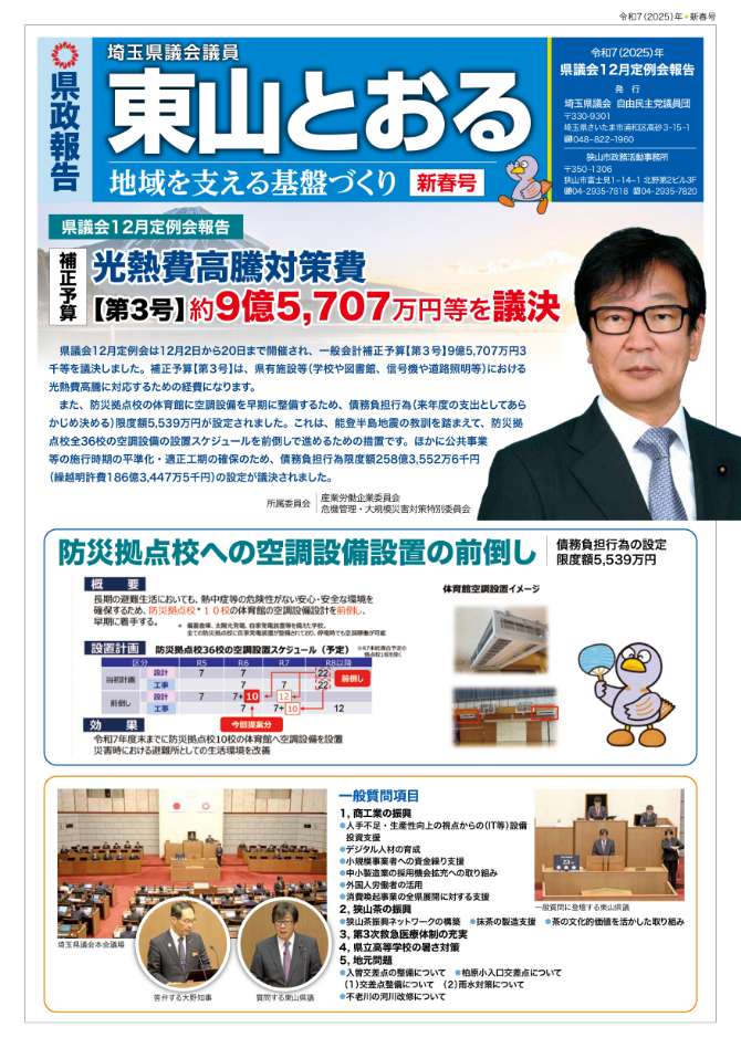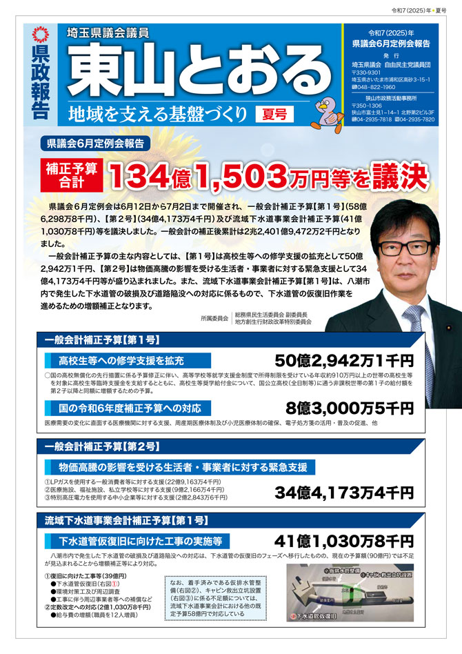 埼玉県議会での活動を中心に、日頃の活動を報告紙としてまとめました。 画像をクリックするとPDFファイルでご覧になれます。